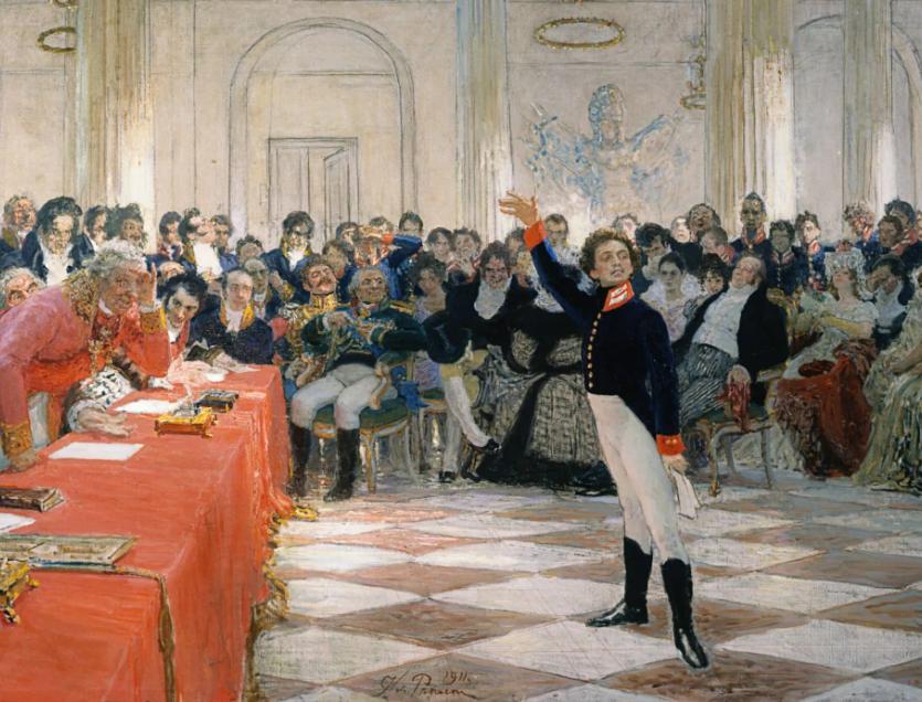 Первый крупный успех ждал Пушкина в 1815 году во время зимнего переводного экзамена — 15-летний лицеист прочитал свое стихотворение «Воспоминания в Царском Селе». На экзамене присутствовал Гавриил Державин, он был потрясен творением юного поэта. Пушкин позже писал: «Не помню, как я кончил свое чтение; не помню, куда убежал. Державин был в восхищении; он меня требовал, хотел меня обнять… Меня искали, но не нашли».